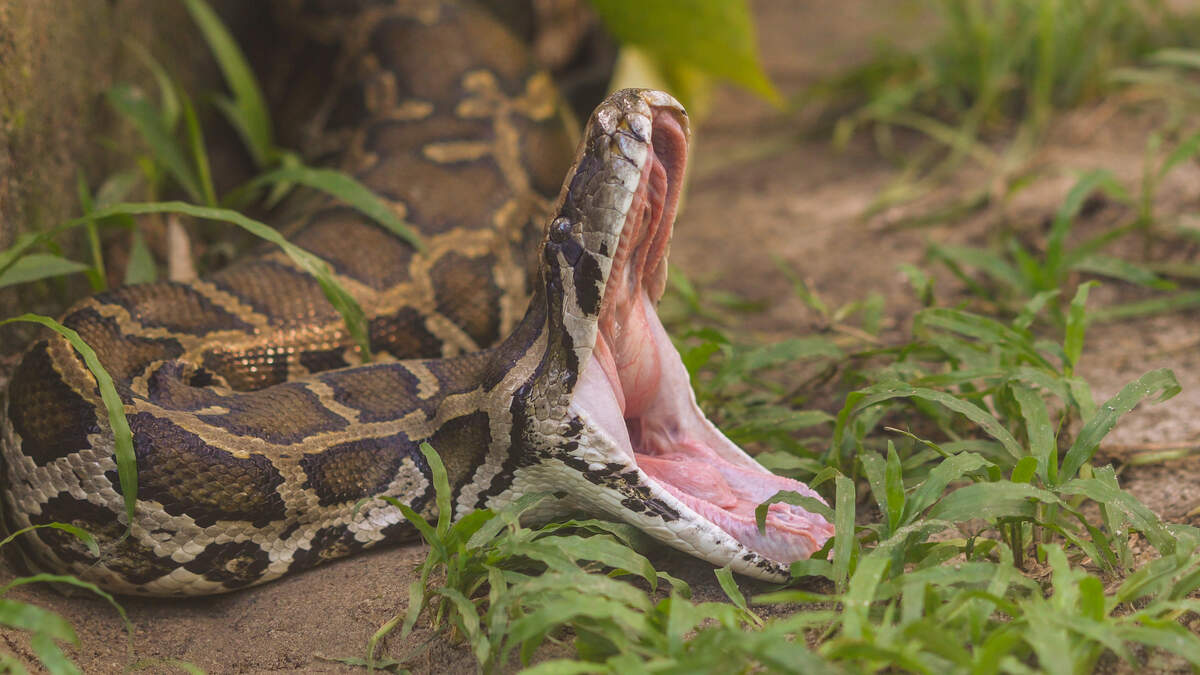 Momentos de tensión se vivieron en el patio de la casa de este hombre, luego de que una serpiente pitón gigante lo mordiera en el rostro.